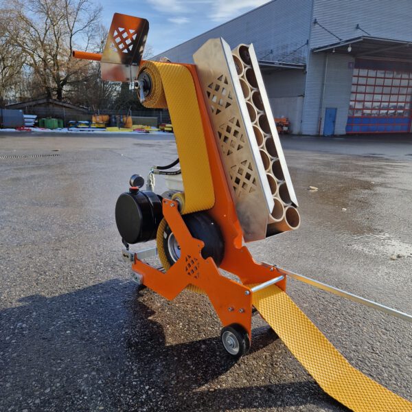 Die kompakte und transportfreundliche Bauweise sorgt zusammen mit der robusten Konstruktion für hohe Alltagstauglichkeit, während das Gerät gleichzeitig leicht manövrierbar bleibt. Eine innovative Anreißfunktion ermöglicht das saubere Ablösen der Markierungsfolie direkt von der Fahrbahn. Das System ist speziell für temporäre Markierungsfolien mit Gewebeeinlage bis 15 cm Breite ausgelegt.